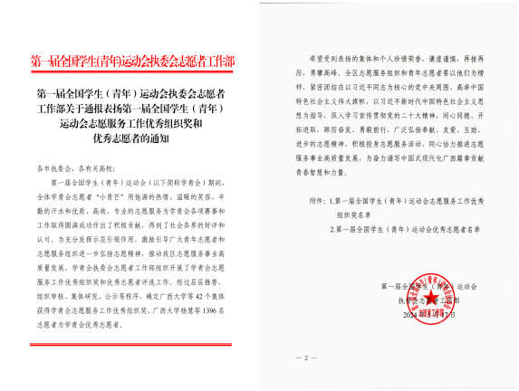 beats365官网 网页版荣获第一届全国学生(青年)运动会志愿服务 工作优秀组织奖