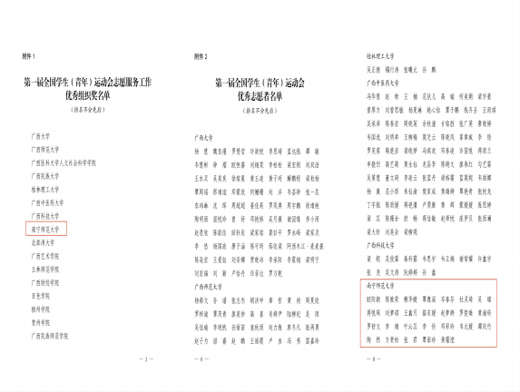 为了协助第一届全国学生青年运动会的顺利进行,beats365官网 网页版遴选了252名志愿者积极参与学青会开闭幕式观众引导、物资发放等志愿服务工作。在此期间,beats365官网 网页版志愿者们充分发挥了志愿服务精神,以饱满的工作热情和良好的专业素养,为学青会提供了优质的志愿服务,展现出了南宁师大青年志愿者的良好风貌,得到了主办方充分肯定。