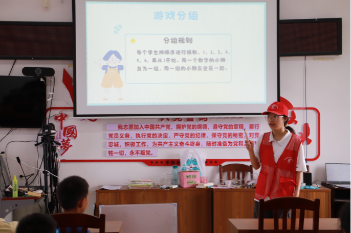 “1、2、3、1、2、3……”清脆的报数声响起,老师通过报数游戏为同学们分组,轻松有趣的方式让课堂氛围瞬间活跃。随后,以“梦想启航”为主题的心理健康教育课正式开始。“梦想暗号传递” 游戏成为破冰环节,每组第一位同学抽取与梦想相关的词语,用肢体动作依次传递。“老师”“运动员”等词语在孩子们生动的手势、夸张的表情中接力,成功猜出时的欢呼与失误时的笑声交织。游戏结束后,老师对同学们说道:“追逐梦想就像通关这场游戏,每一个表达想法的瞬间,每一次与伙伴配合的契机,每一回想要放弃时的坚持,都是不可或缺的关键步骤。只有走好过程中的每一步,才能离梦想越来越近。”一番话让同学们若有所思,对“梦想”二字有了初步的感悟。