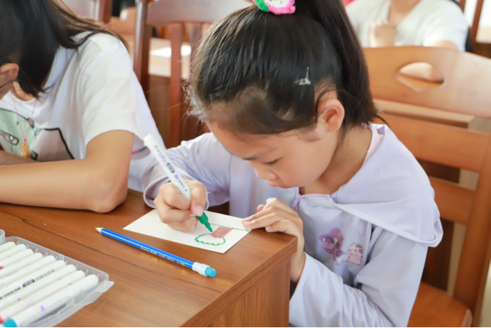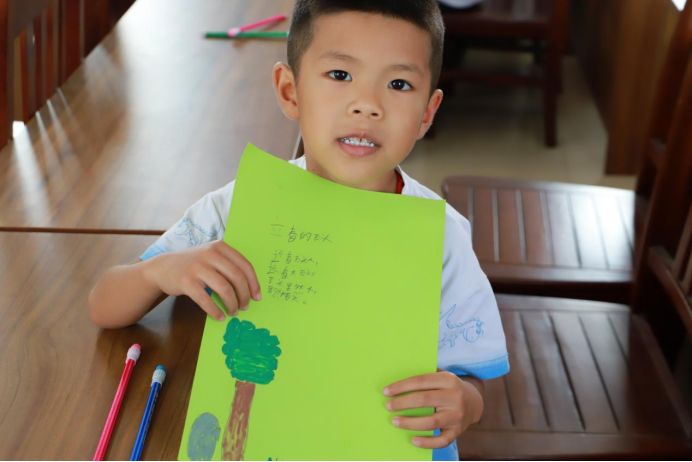 二十四节气鉴赏课上,“春雨惊春清谷天,夏满芒夏暑相连……”熟悉的节气歌旋律响起,孩子们跟着轻轻哼唱,课堂在袅袅歌声中开启。“现在我们来猜个节气!”老师笑着提问:“‘小荷才露尖尖角,早有蜻蜓立上头’,这说的是哪个节气呀?”大家异口同声地回答“立夏”。最热闹的当属绘制节气卡片,孩子们挑选心仪的彩笔,在卡纸上尽情绘画,草地、雪花、和葱绿的大树跃然纸上,一张张卡片拼出了流动的四季长卷。