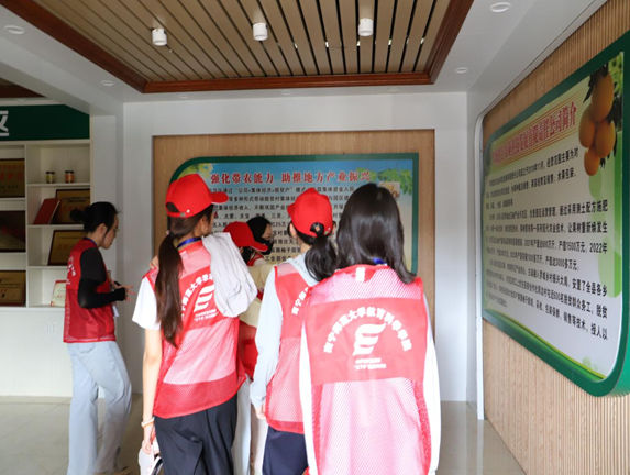 在开展夏令营活动的同时,实践队调研组成员前往罗城金玉柚产业示范区参观金玉柚种植基地。罗城县种植金玉柚已有500多年历史,示范区内种有1500亩的金玉柚。实践队成员在参观过程中了解到金玉柚产业为当地创收和就业做出了不少贡献,为当地乡村振兴提供了重要助力。实践队还深入天宝村良泗屯,了解当地家长与孩子心理健康教育现状与需求,完成调研问卷并形成访谈实录,为后续当地进行心理健康教育积累资料。