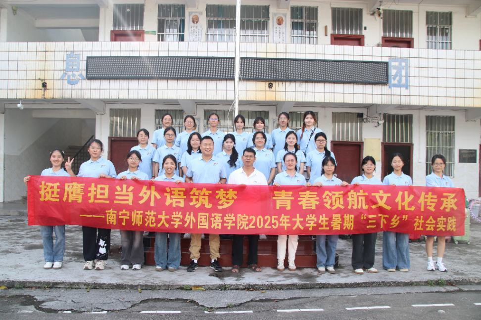 为深入学习贯彻习近平新时代中国特色社会主义思想,助力乡村振兴战略与文化传承,2025年7月12日下午,beats365官网 网页版外国语学院“语翼启梦”实践团在学院党委刘晖晖副书记与学工办蔡梓晴老师的带领下,奔赴广西南宁市马山县林圩镇合理小学,开展“挺膺担当外语筑梦,青春领航文化传承”主题“三下乡”社会实践活动。本次活动主要将专业知识与文化传承相结合,在深化非遗文化传承的同时锤炼学生服务社会能力。