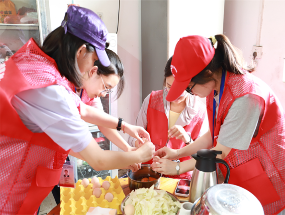 后勤组成员则以厨房为阵地,用烟火气温暖着整个团队,小小的厨房总能看到她们忙碌的身影。她们统筹负责食物与生活用品的采买,细致盘点物资消耗,确保团队饮食安全与生活所需,用琐碎而扎实的工作,让成员们在忙碌的实践之余,总能感受到“家”的温暖。