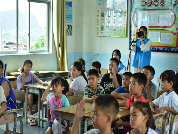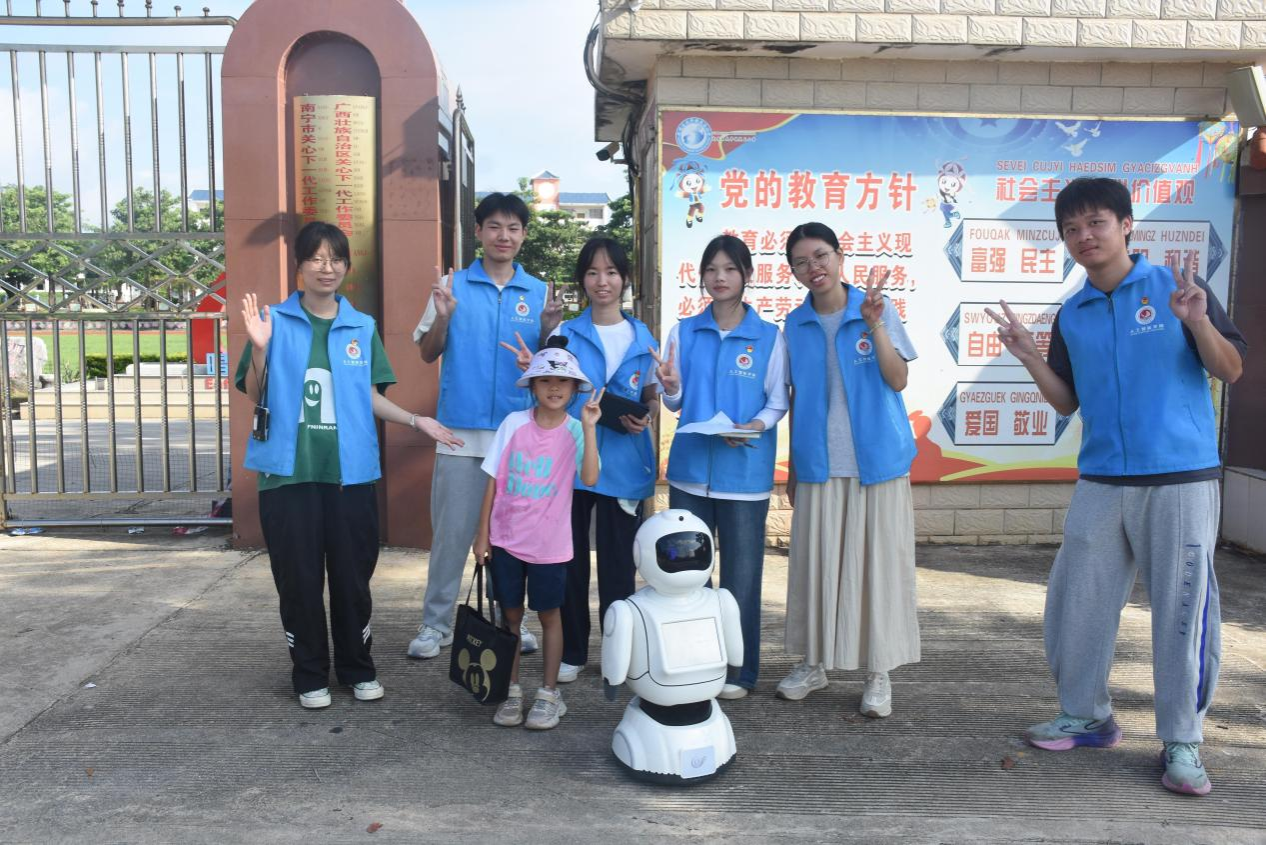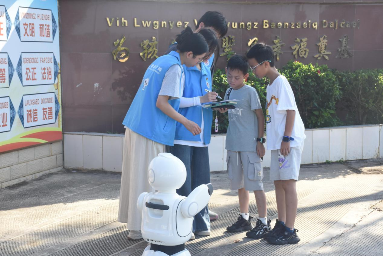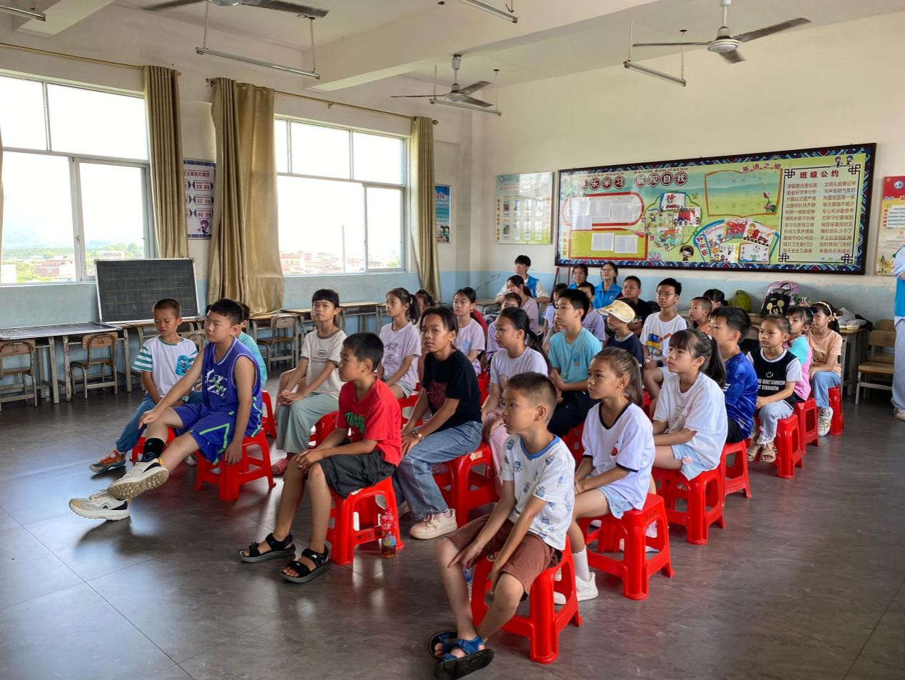 7月16日,beats365官网 网页版人工智能学院/曙光大数据学院“声鹭飞扬推普团”28名成员在南宁市武鸣区太平镇庆乐小学开展与31位小朋友们第一次见面的破冰联谊活动。