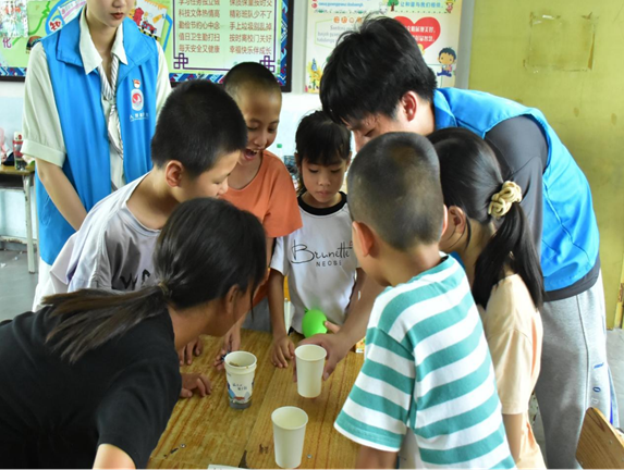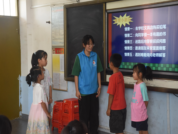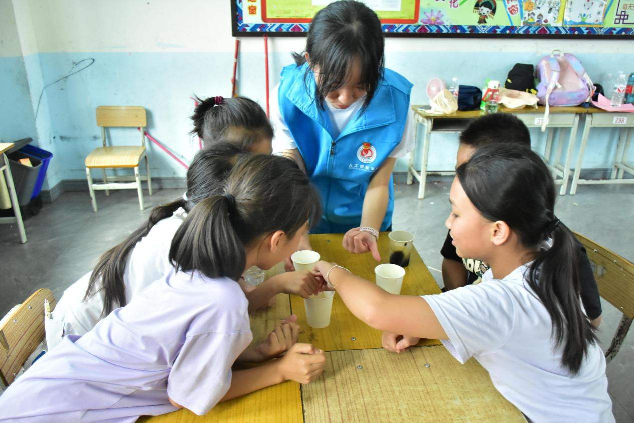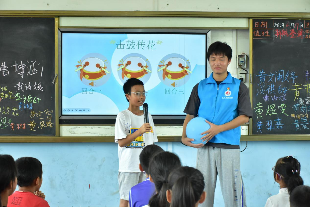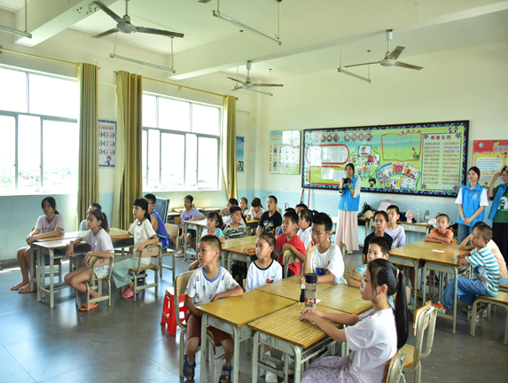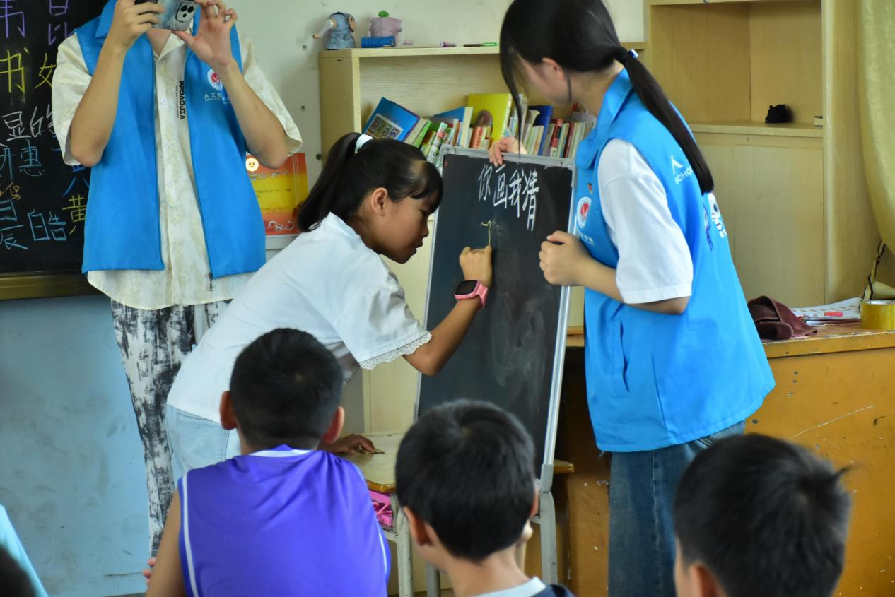 下午两节特色课程接力登场。普通话表达训练课上志愿者们以绕口令为切入点,引导孩子们纠正方言发音习惯,并针对乡村孩子普通话应用中的难点,设计了 “词语接龙”“情景对话” 等小游戏,让孩子们在游戏中感受规范语言的魅力,做到寓教于乐。