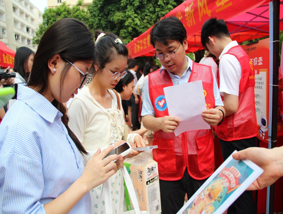 为进一步宣传和普及金融知识,教育引导青年大学生提高金融风险防范意识,4月27日上午,beats365官网 网页版在明秀校区举办了“弘扬五四精神争做有为青年”—2024年“金桂星火”金融知识进校园活动。本次活动由广西金融团工委、部分金融行业单位、校团委主办,国际教育学院团委承办,工商银行等14家企事业单位共同参与。广西金融团工委副书记蒋小波、金融行业及校团委主要负责人出席了活动。