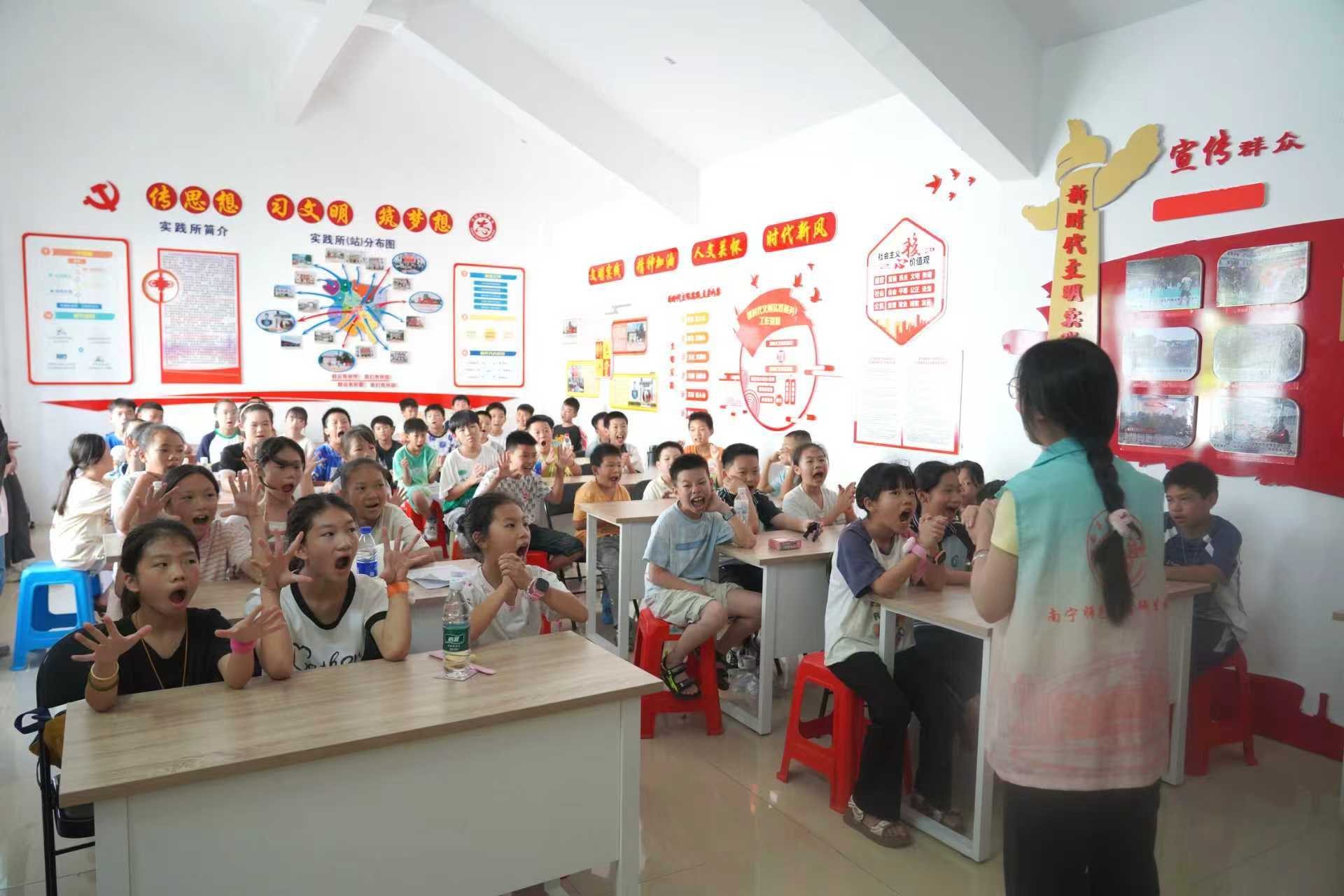 活动中,实践团成员为孩子们带来生动有趣的普通话课程,通过口部操训练、绕口令比赛、看图猜成语等互动教学方式,帮助孩子们掌握标准发音技巧。针对平翘舌、前后鼻音等常见问题,团队成员们耐心指导,学生们在轻松愉快的氛围中掌握了标准发音技巧,提升了普通话水平。为加大推广效果,实践团还走进村户,向村民普及普通话在日常生活中的重要性。团队成员们结合方言讲解,发放学习手册,并示范常用语句的发音,激发了村民的学习热情。“以前出门总担心普通话不好会导致沟通不畅,现在老师们帮我们纠正了发音,我们也认真学习,这感觉真好!”一位村民在学习后表示。
