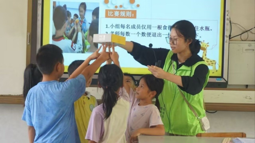 团队合作课程中,实践团设置了“共同托举纸盒”“A4纸传递”等活动,让孩子们在实践中体会明确目标与有效沟通对团队协作的重要性。生理卫生教育板块,以“我的身体小宇宙”“如何健康生活”为主题,通过动画、模型及案例讲解,帮助学生认识人体构造、养成健康习惯。安全课程上,实践团通过情景模拟、案例讲解等方式,向孩子们普及了交通安全、防溺水、消防安全等方面的知识,让他们掌握了基本的自救自护技能。7月21日,实践团用一场趣味运动会,为这段支教时光画上圆满句点。